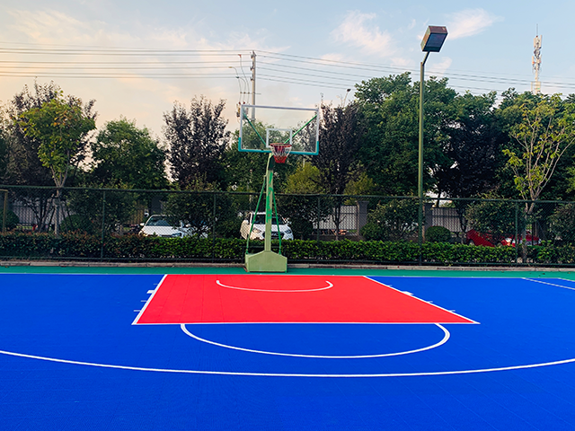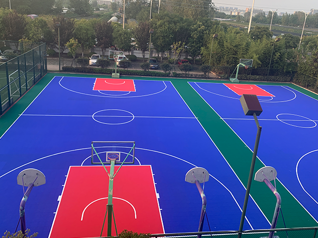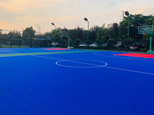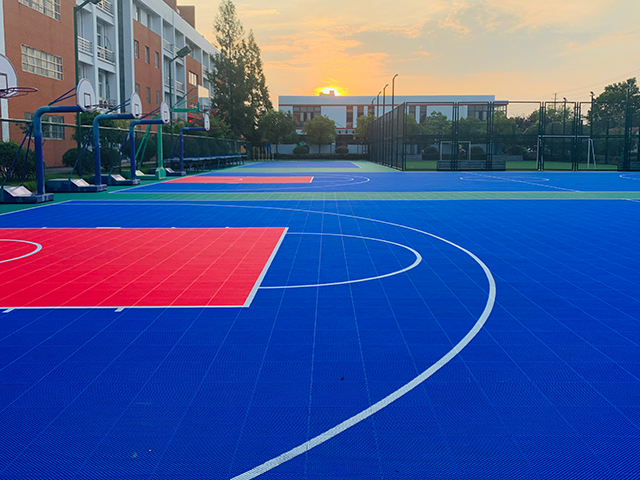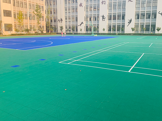 淮安市枚乘路小学小学篮球场,羽毛球场,排球场地悬浮拼装运动地板已完工