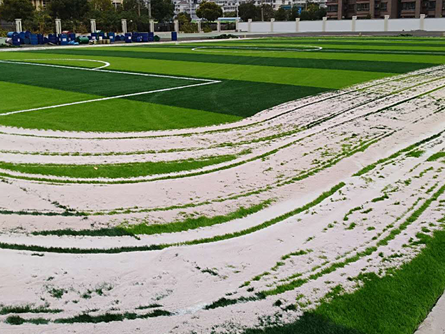 新港九年一贯制学校预制型塑胶跑道硅PU球场、人造草坪铺设!